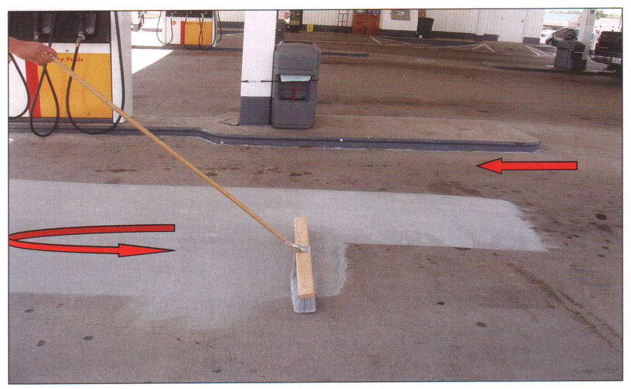 SP1: ReKrete Waterless concrete cleaner being applied to oil stained driveway